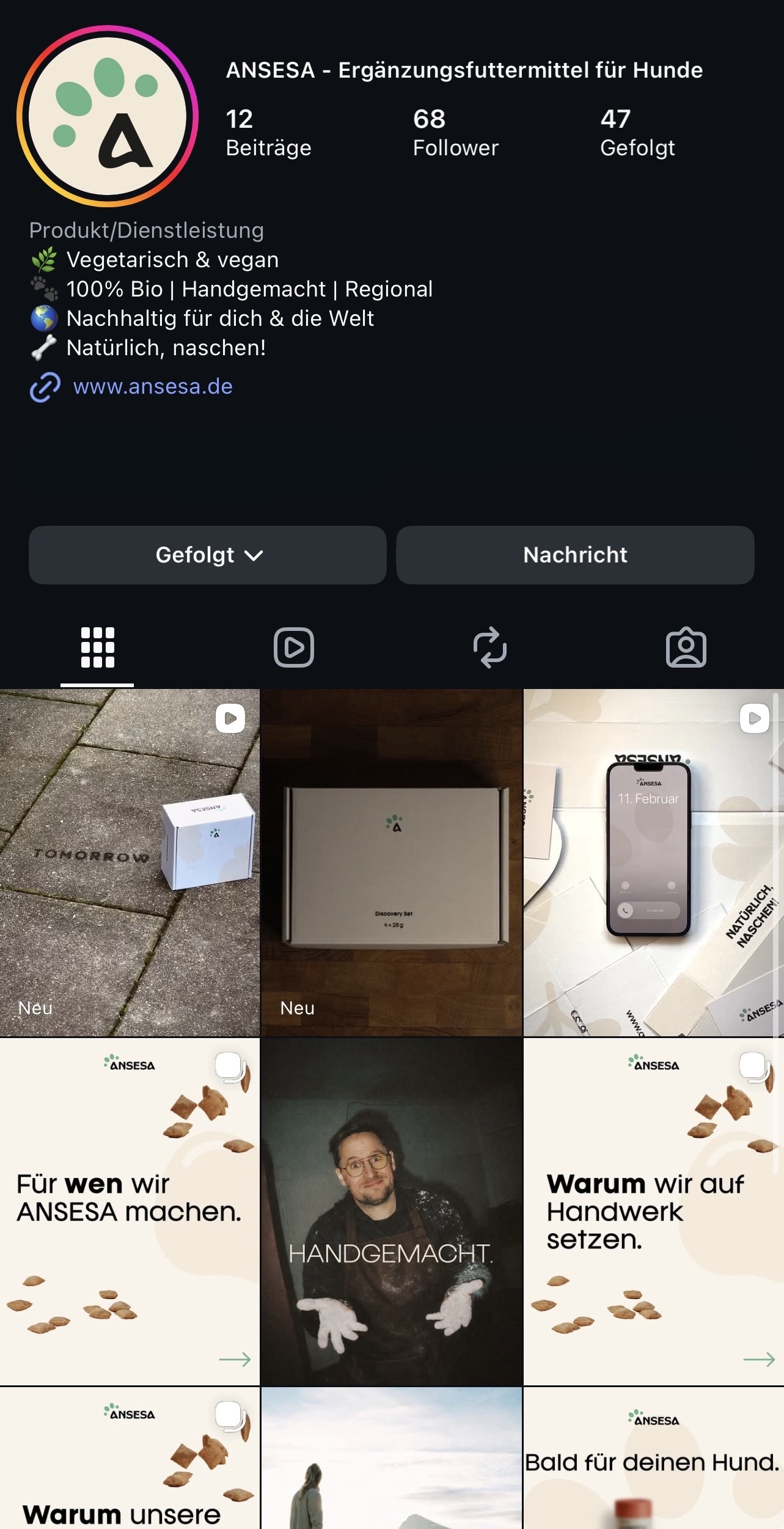 Wir haben ANSESA gegründet, weil wir überzeugt sind, dass fleischlose Hundeleckerlis einen sinnvollen Mehrwert für Gesellschaft und Umwelt leisten können. Verantwortung beginnt für uns bei den Zutaten und endet nicht beim Produkt.